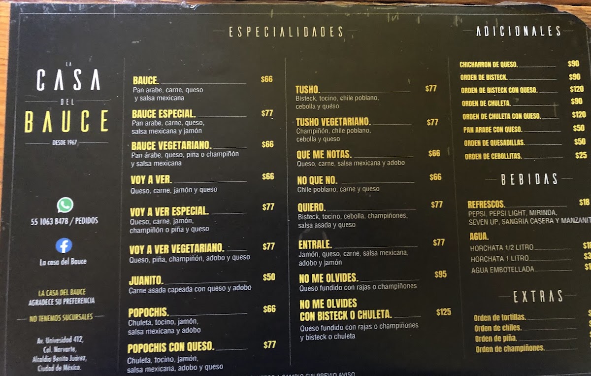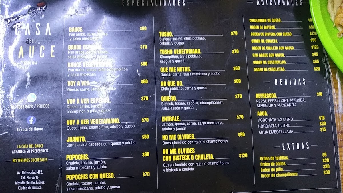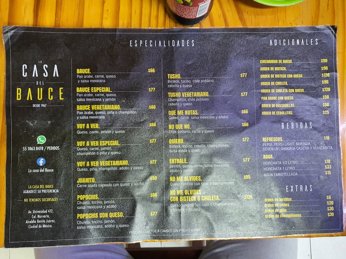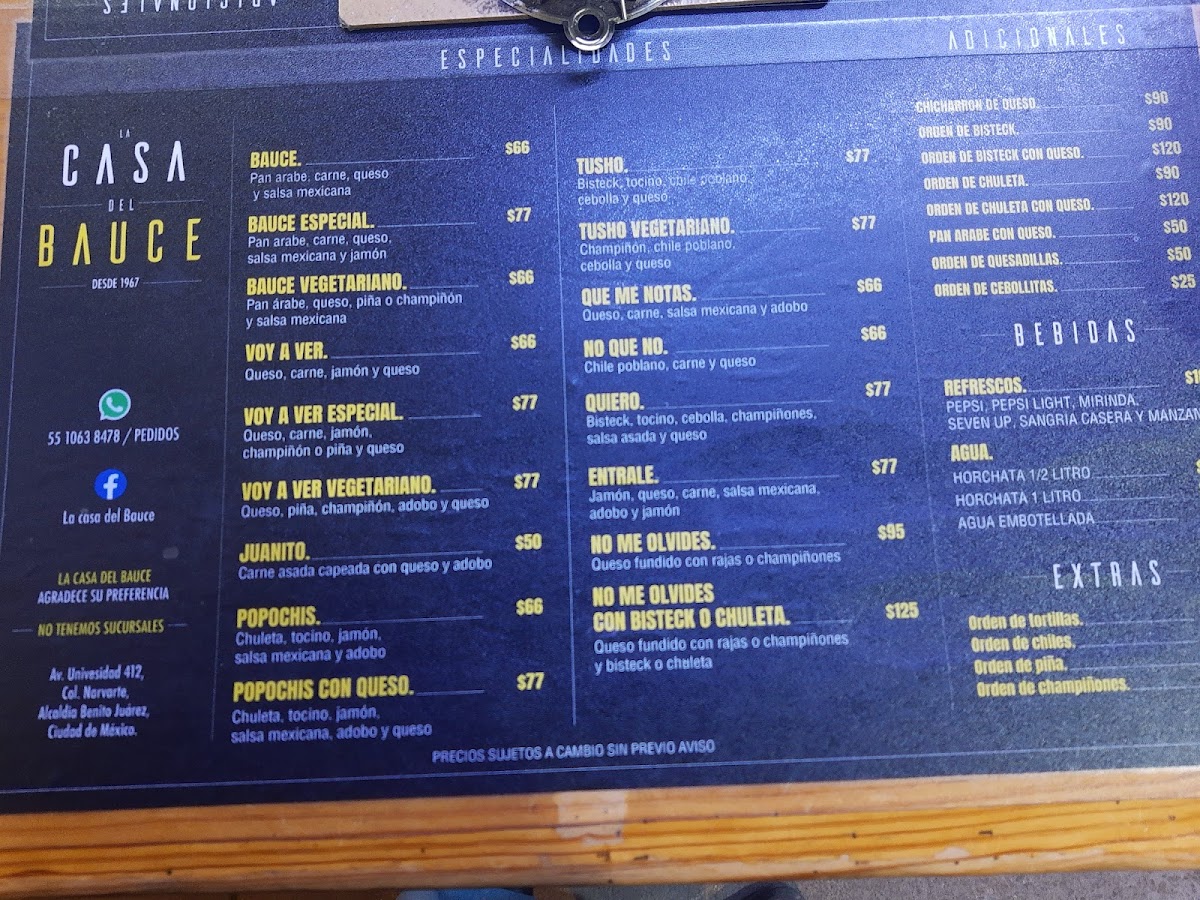Welcome to La Casa Del Bauce, a hidden gem in Narvarte Poniente, where the essence of traditional Mexican cuisine comes to life. Though the facade may appear modest, this eatery draws in food lovers seeking unique flavors and quick, attentive service. The heart of the menu lies in its carefully curated selection of specialties, featuring delicious tacos, innovative wire-style dishes, and aromatic Arabic bread similar to gringa. Vegetarians will also delight in the options available, ensuring everyone can find something to savor.